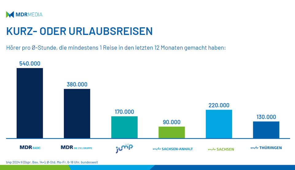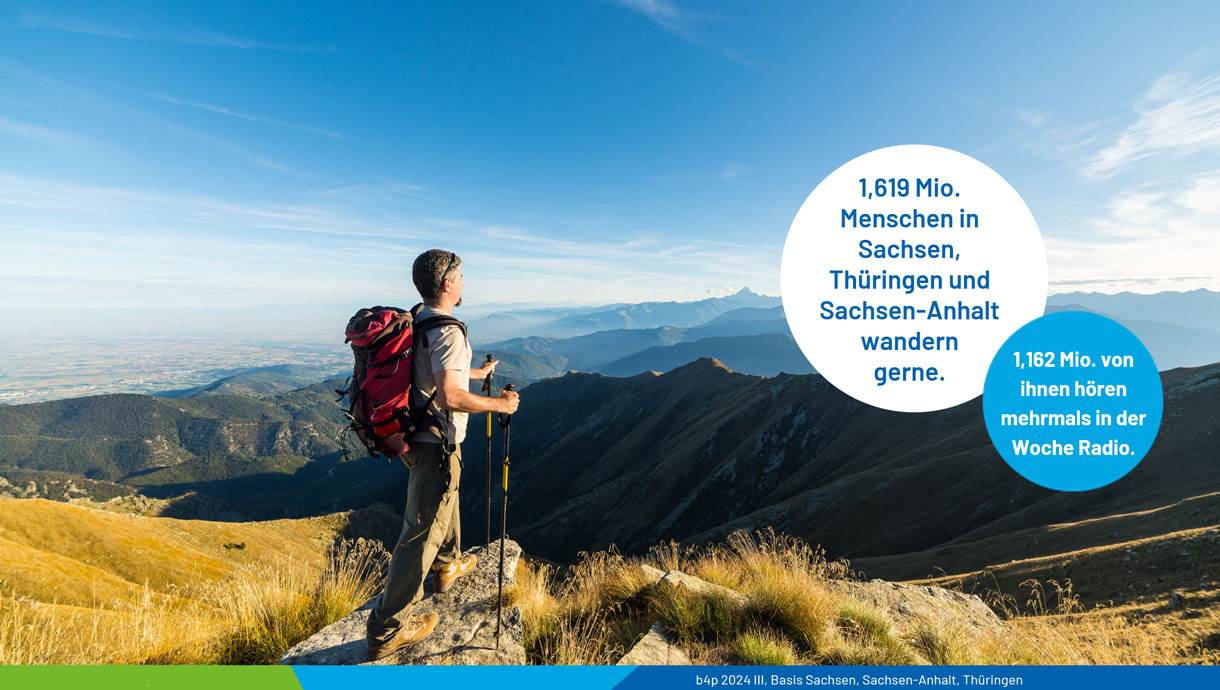 Sie hören im Schnitt pro Tag 261 Minuten Radio - eine viertel Stunde länger als die Bundesdeutschen im Durchschnitt* - und sind damit die passende Zielgruppe für Radiowerbung. Darüber hinaus hören 93,3 % in Mitteldeutschland linear Radio**.